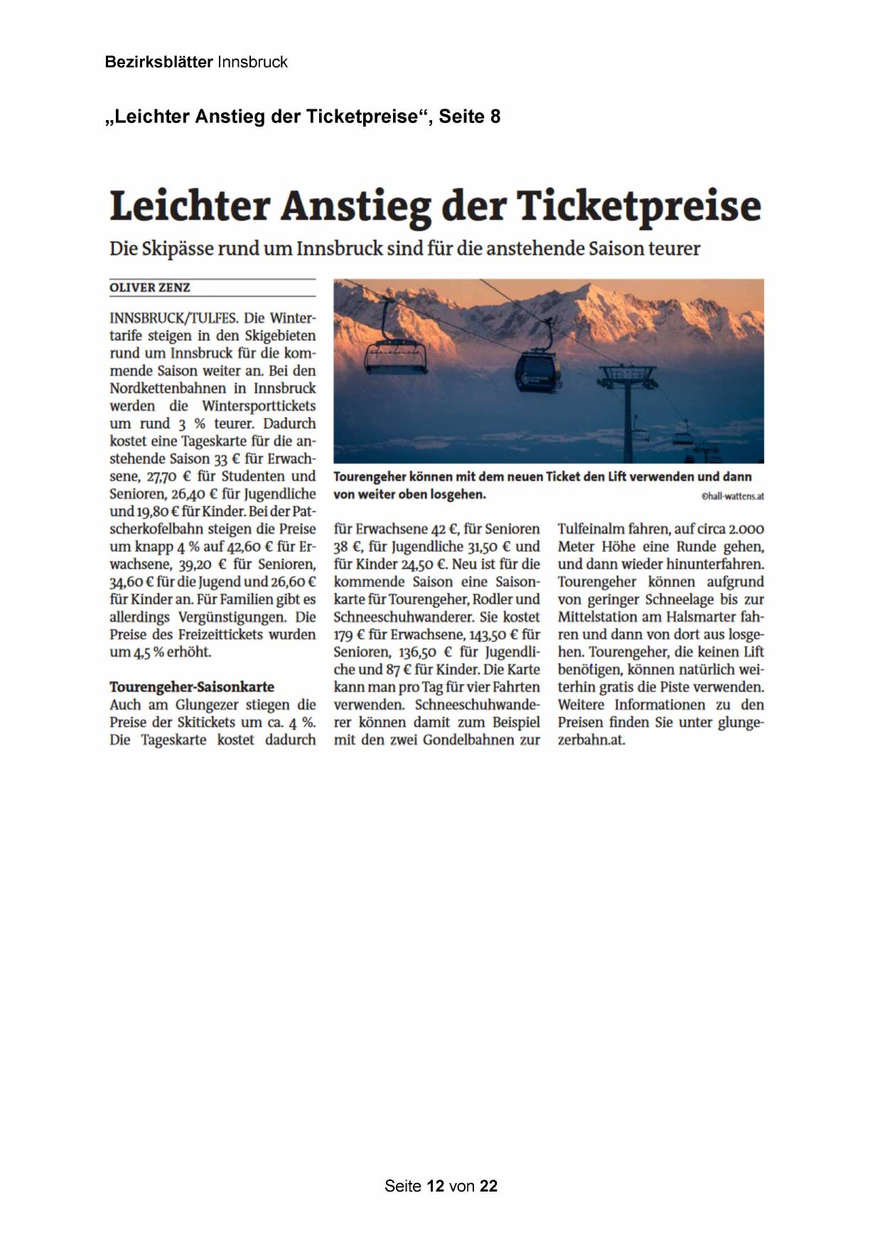 und 19,80 € für Kinder. Bei der Patscherkofelbahn steigen die Preise
