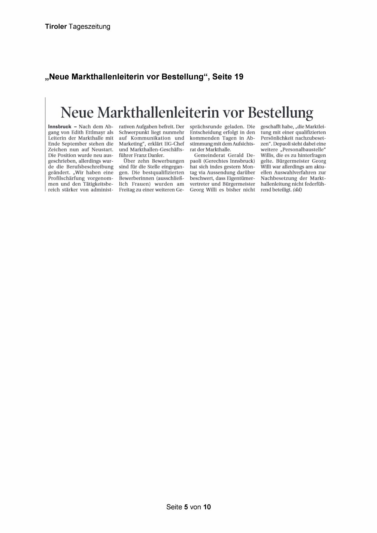 „Neue Markthallenleiterin vor Bestellung“, Seite 19