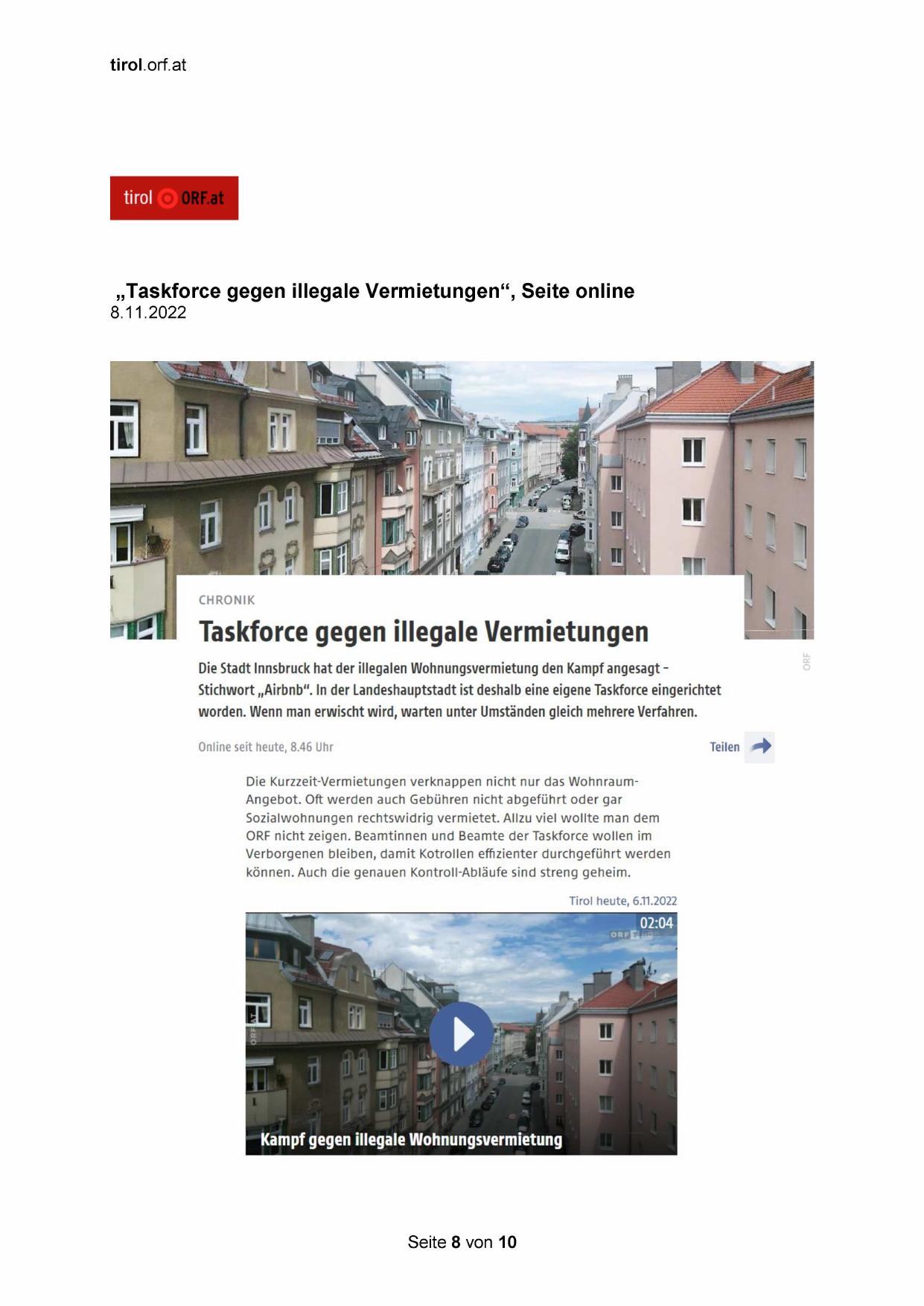 „Taskforce gegen illegale Vermietungen“, Seite online