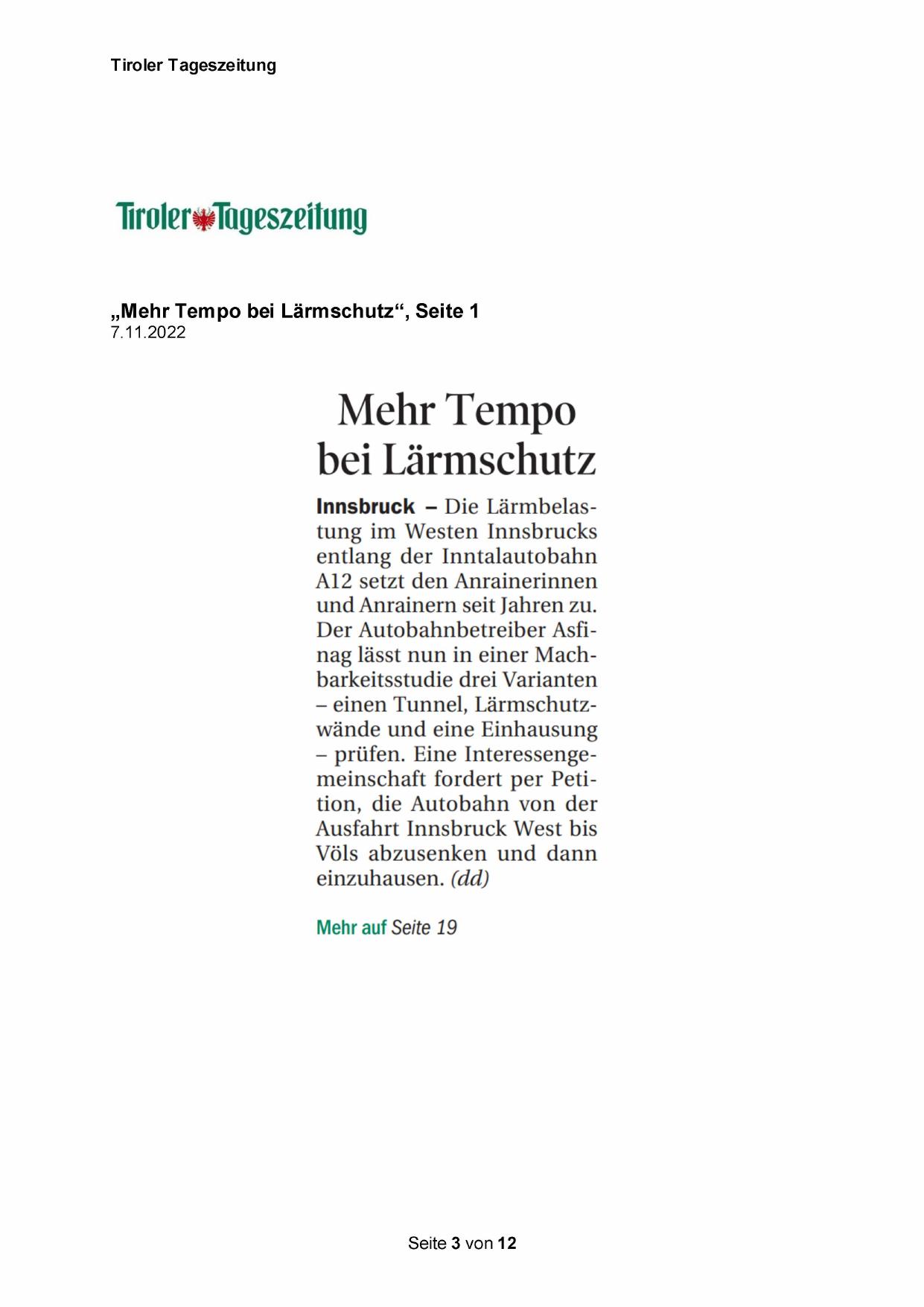 „Mehr Tempo bei Lärmschutz“, Seite 1
