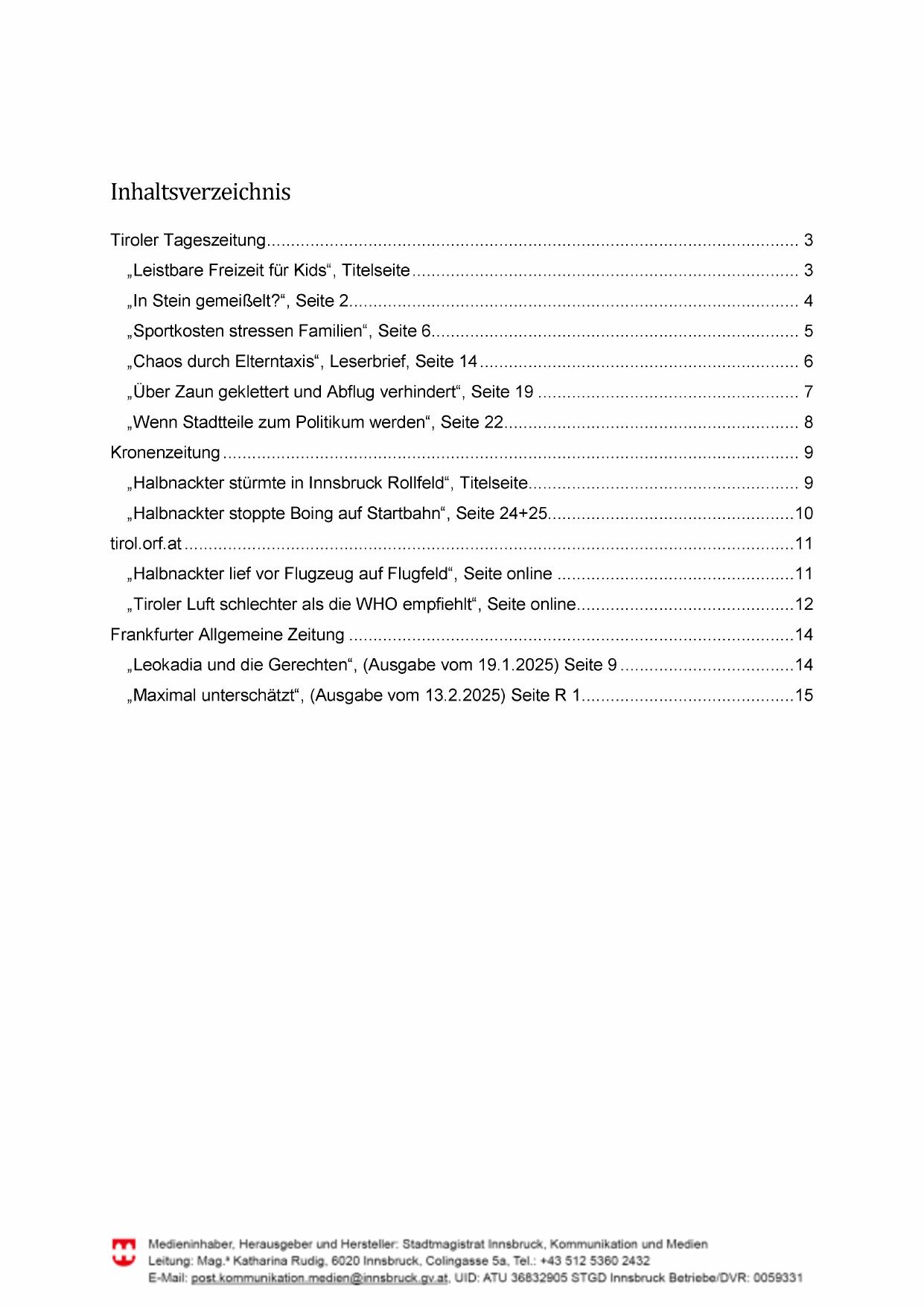 FPYY Medieninhaber, Herausgeber und Hersteller: Stadtmagistrat Innsbruck, Kommunikation und Medien