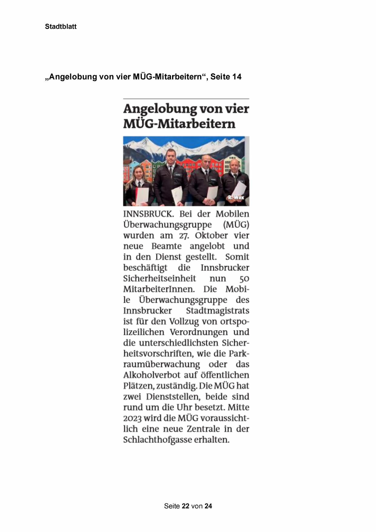 „Angelobung von vier MÜG-Mitarbeitern“, Seite 14