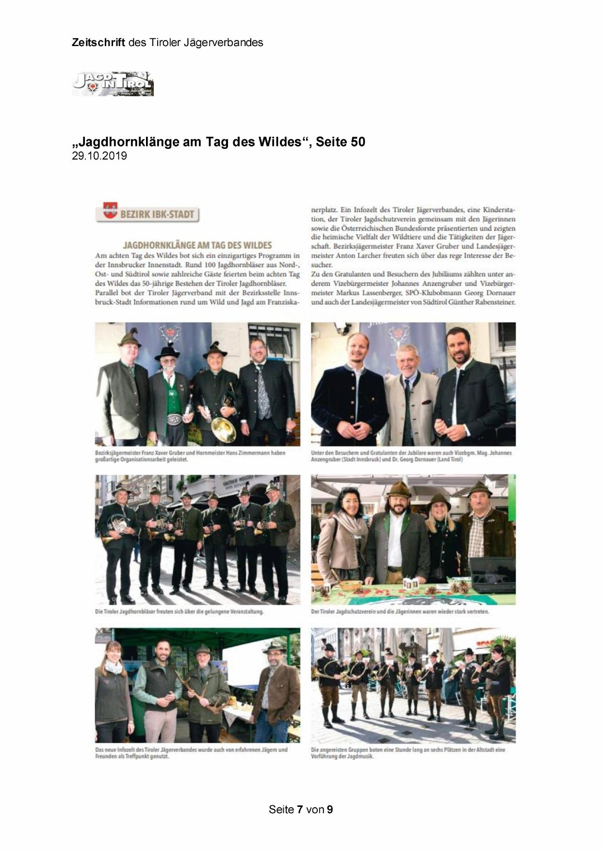 des Wildes das 50-jährige Bestehen der Tiroler Jagdhornbläser.