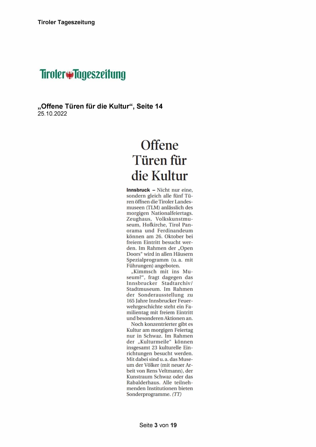 sondern gleich alle fünf Türen öffnen die Tiroler Landesmuseen (TLM) anlässlich des