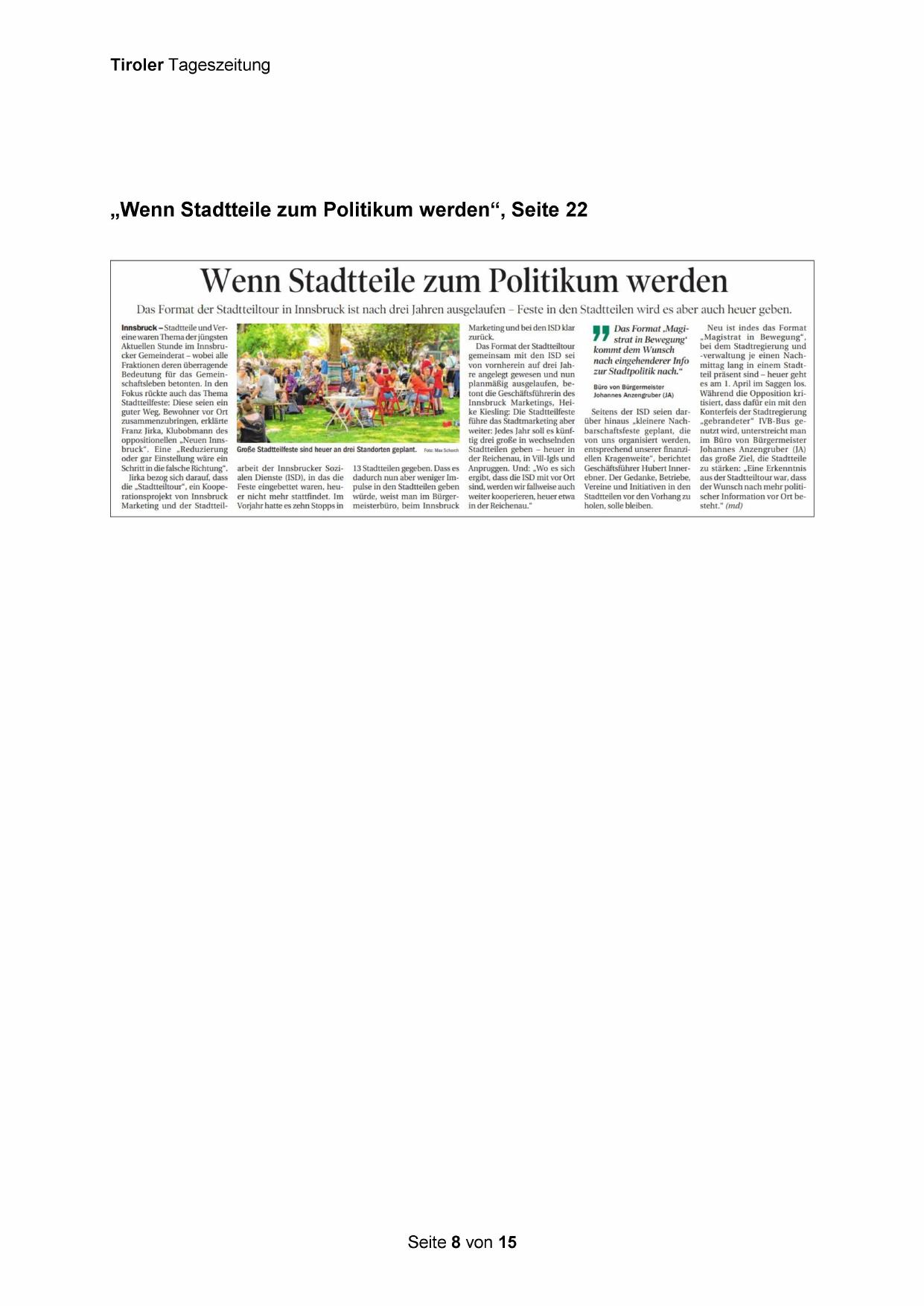 Innsbruck —- Stadtteile und Vereine waren Thema der jüngsten
