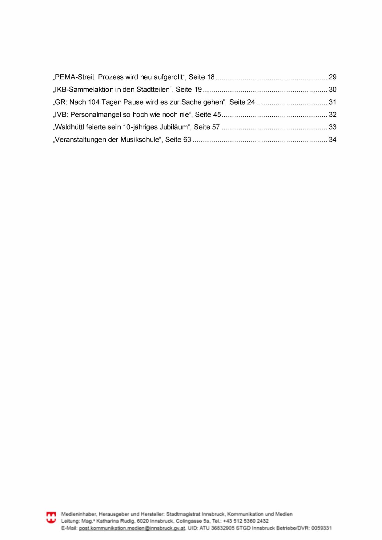 FPYY Medieninhaber, Herausgeber und Hersteller: Stadtmagistrat Innsbruck, Kommunikation und Medien