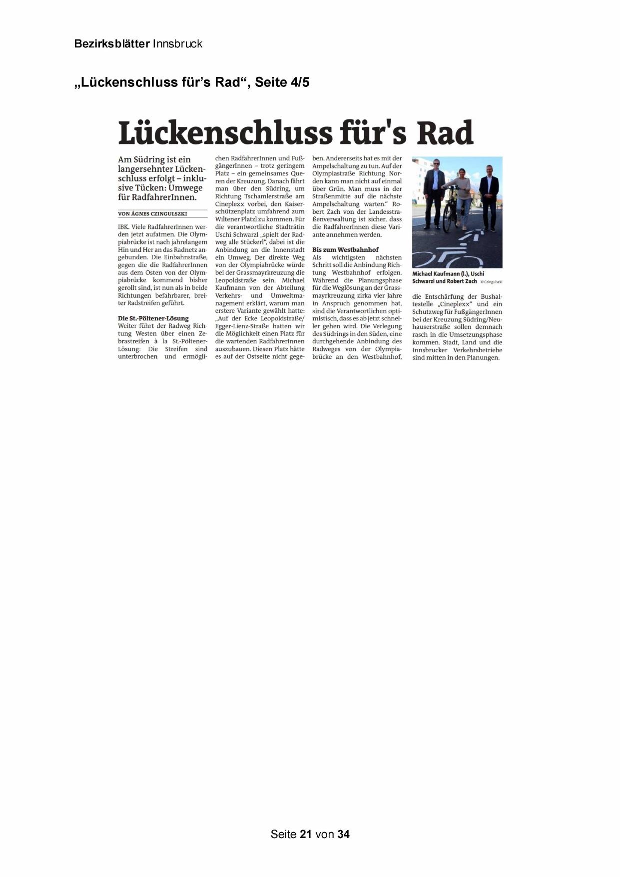 IBK. Viele RadfahrerInnen werden jetzt aufatmen. Die Olympiabrücke ist nach jahrelangem