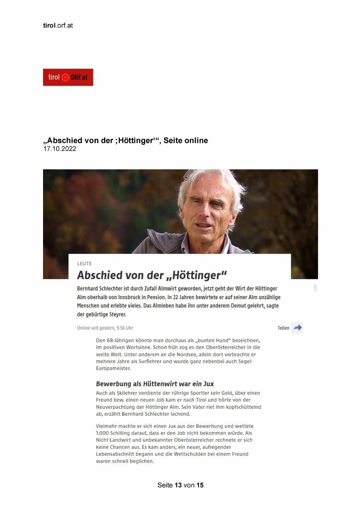 Alm oberhalb von Innsbruck in Pension. In 22 Jahren bewirtete er auf seiner Alm unzählige