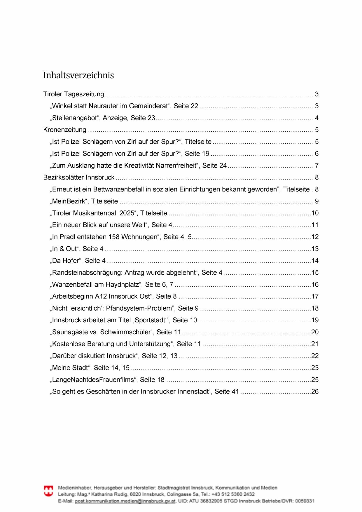Medieninhaber, Herausgeber und Hersteller: Stadtmagistrat Innsbruck, Kommunikation und Medien