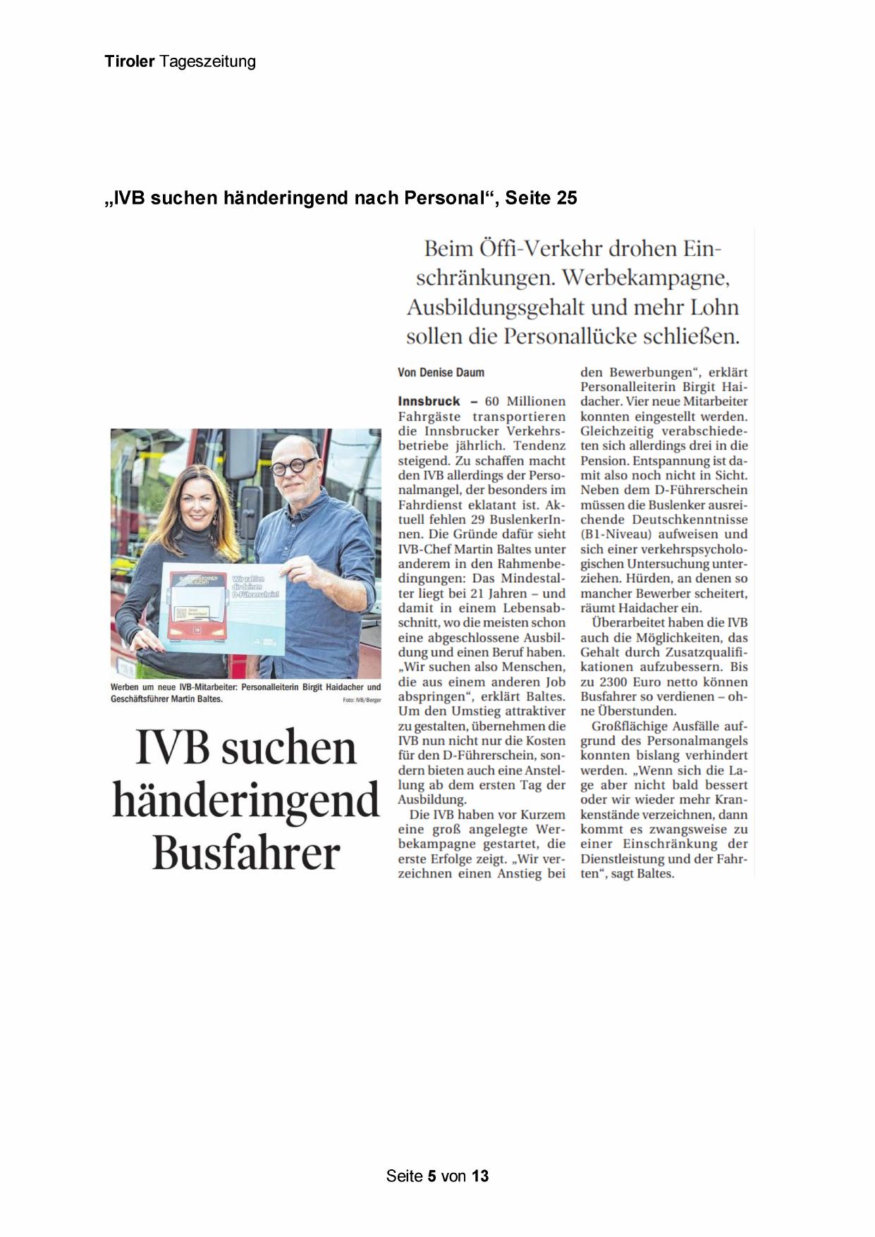 die Innsbrucker Verkehrsbetriebe jährlich. Tendenz