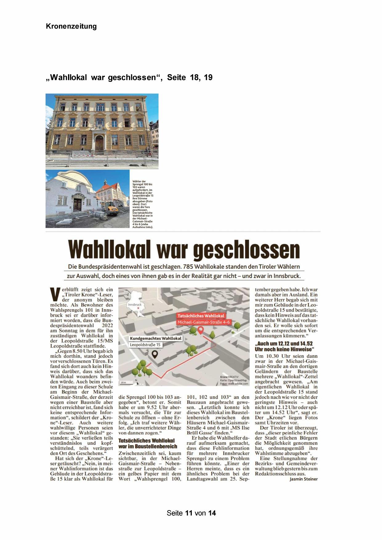 Wahlsprengels 101 in Innsbruck sei er darüber informiert worden, dass die Bundespräsidentenwahl 2022