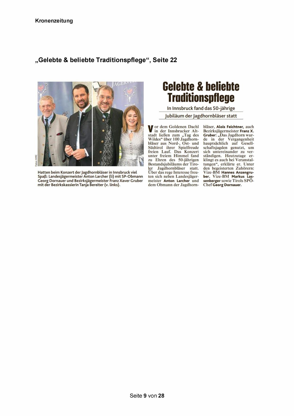 Bestandsjubiläums der Tiroler Jagdhornbläser statt.