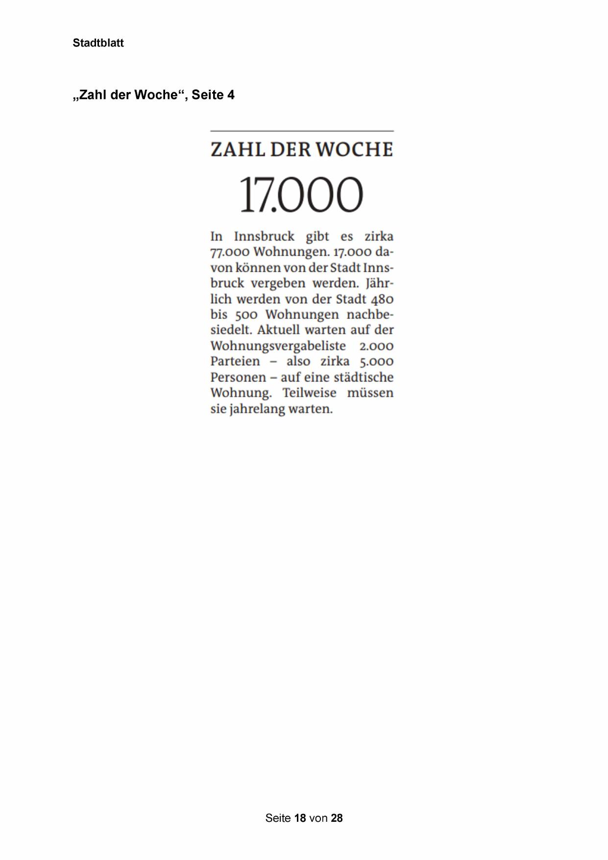 77.000 Wohnungen. 17.000 davon können von der Stadt Innsbruck vergeben werden. Jährlich werden von der Stadt 480