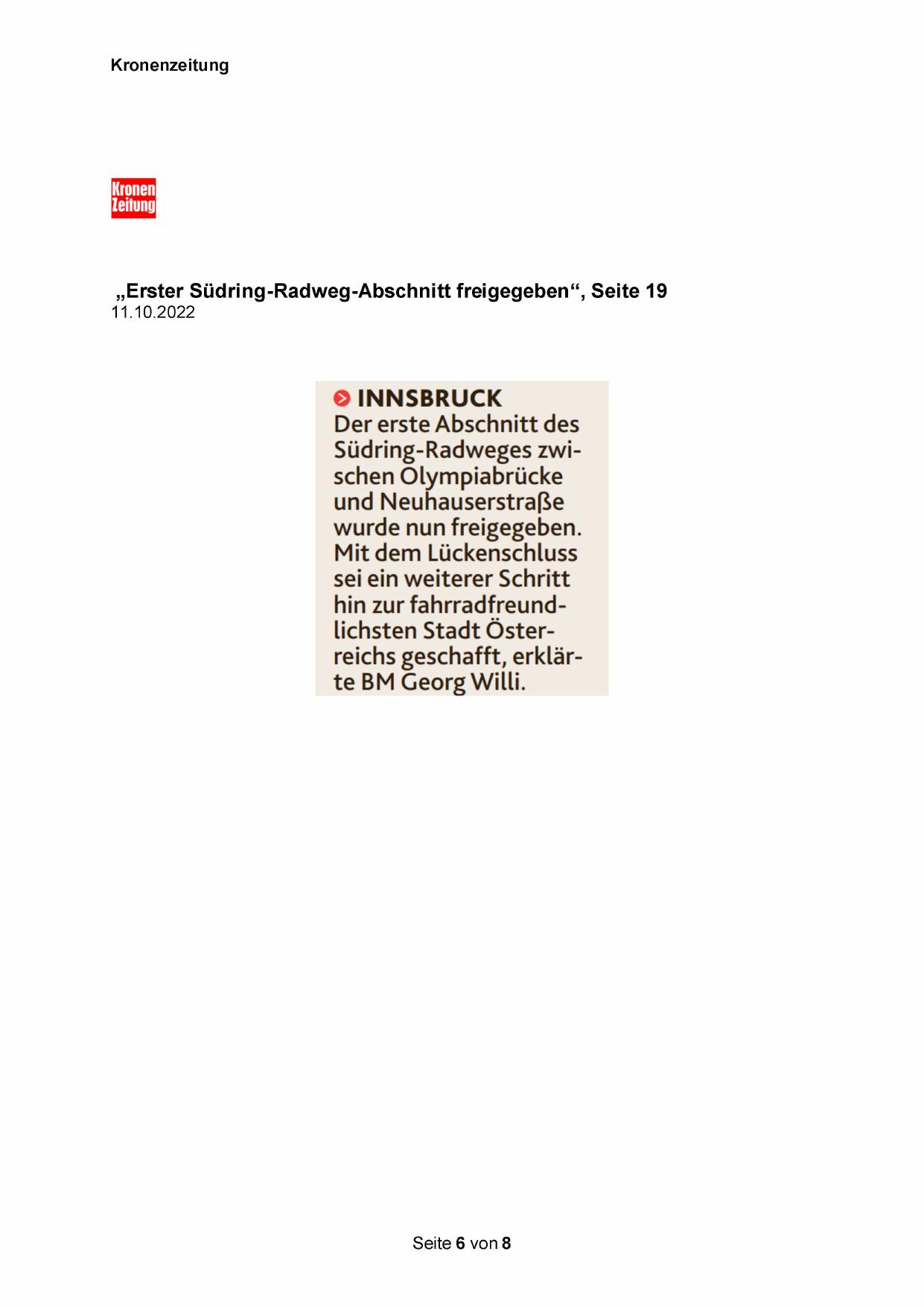 „Erster Südring-Radweg-Abschnitt freigegeben“, Seite 19