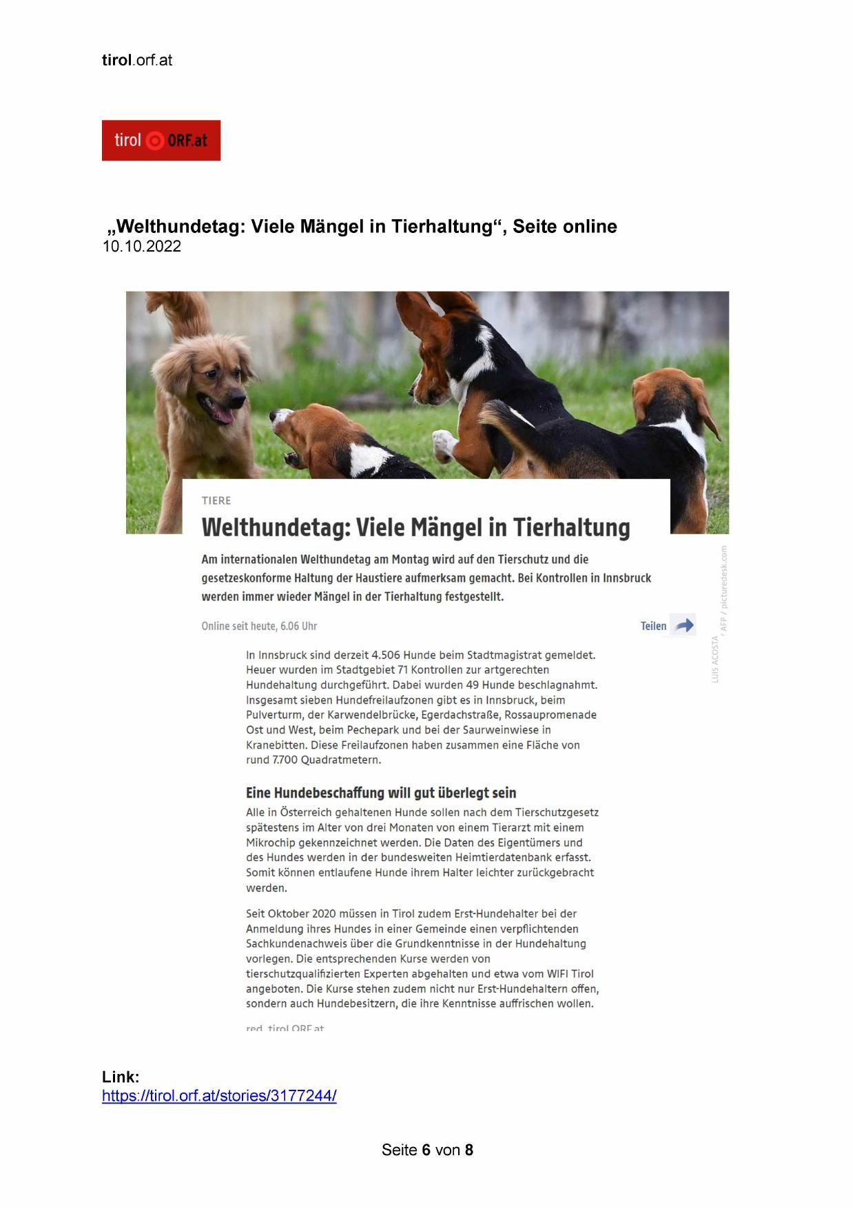 „Welthundetag: Viele Mängel in Tierhaltung“, Seite online