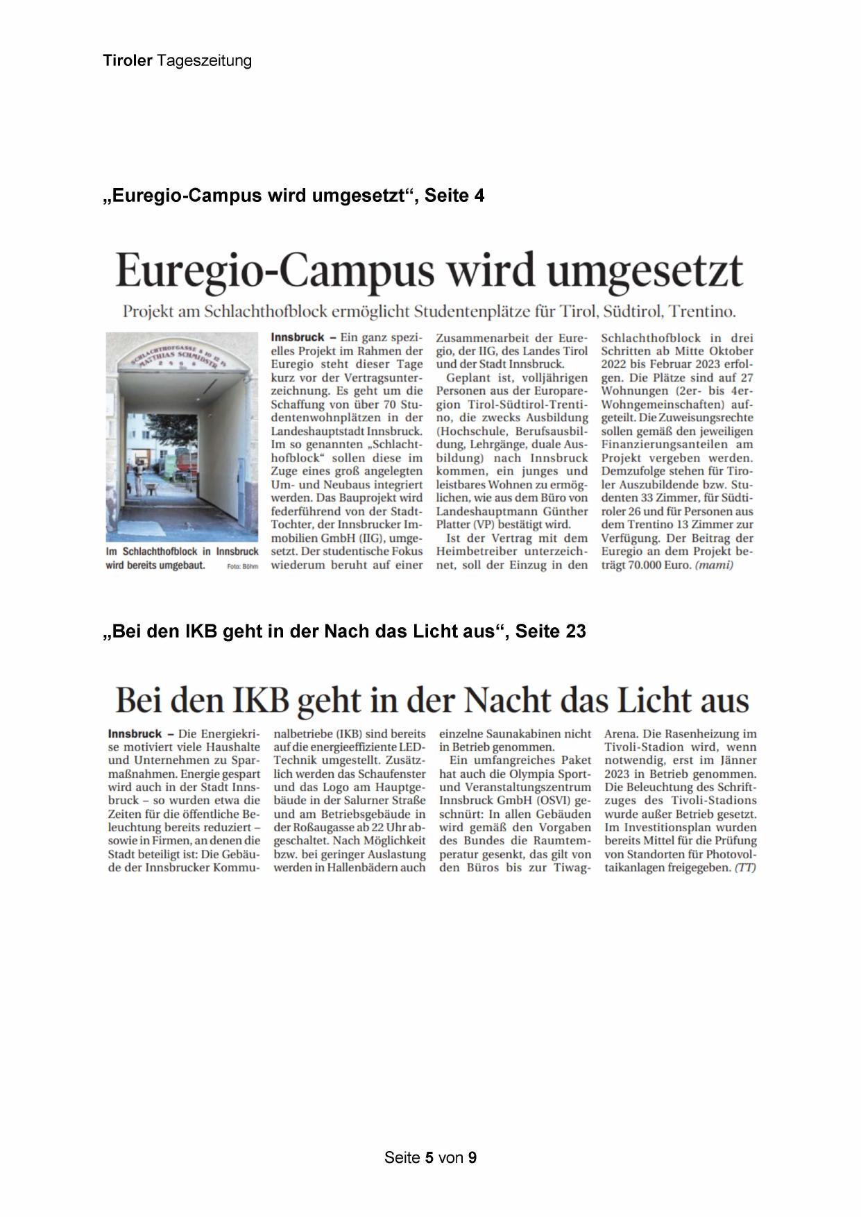 Tochter, der Innsbrucker Immobilien GmbH (1IG), umgesetzt. Der studentische Fokus