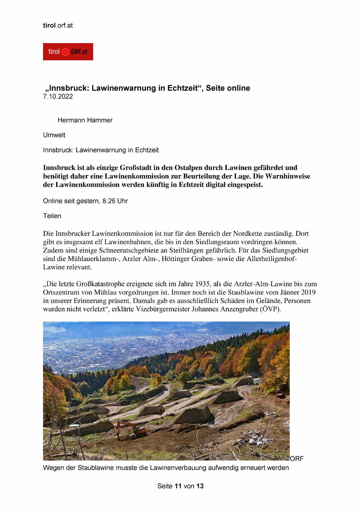„Innsbruck: Lawinenwarnung in Echtzeit“, Seite online