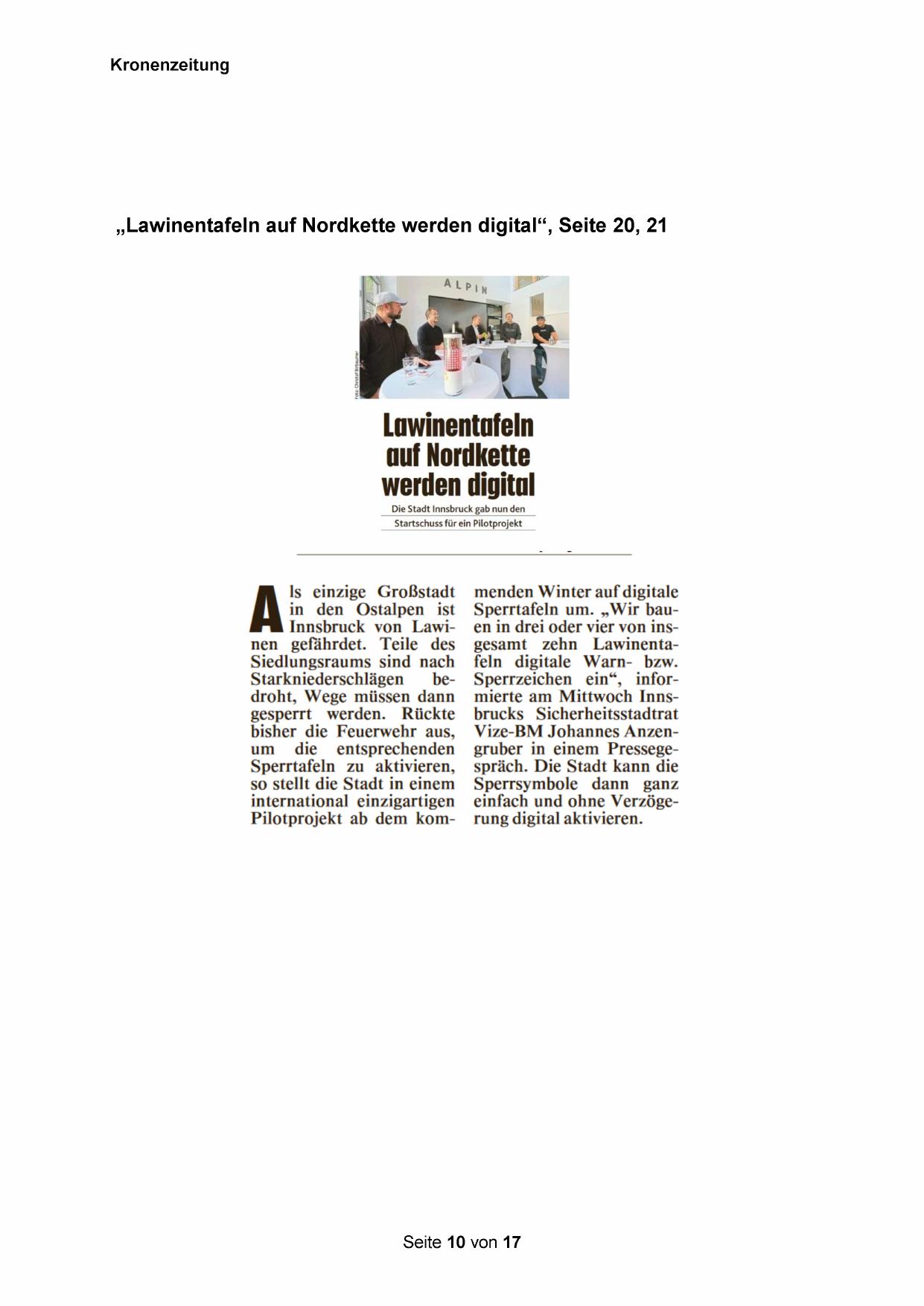 „Lawinentafeln auf Nordkette werden digital‘“, Seite 20, 21