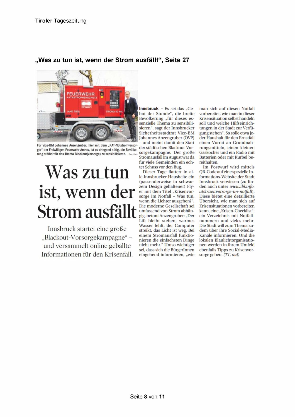 ebenfalls Tipps zu Krisenvorsorge geben. (TT, md)