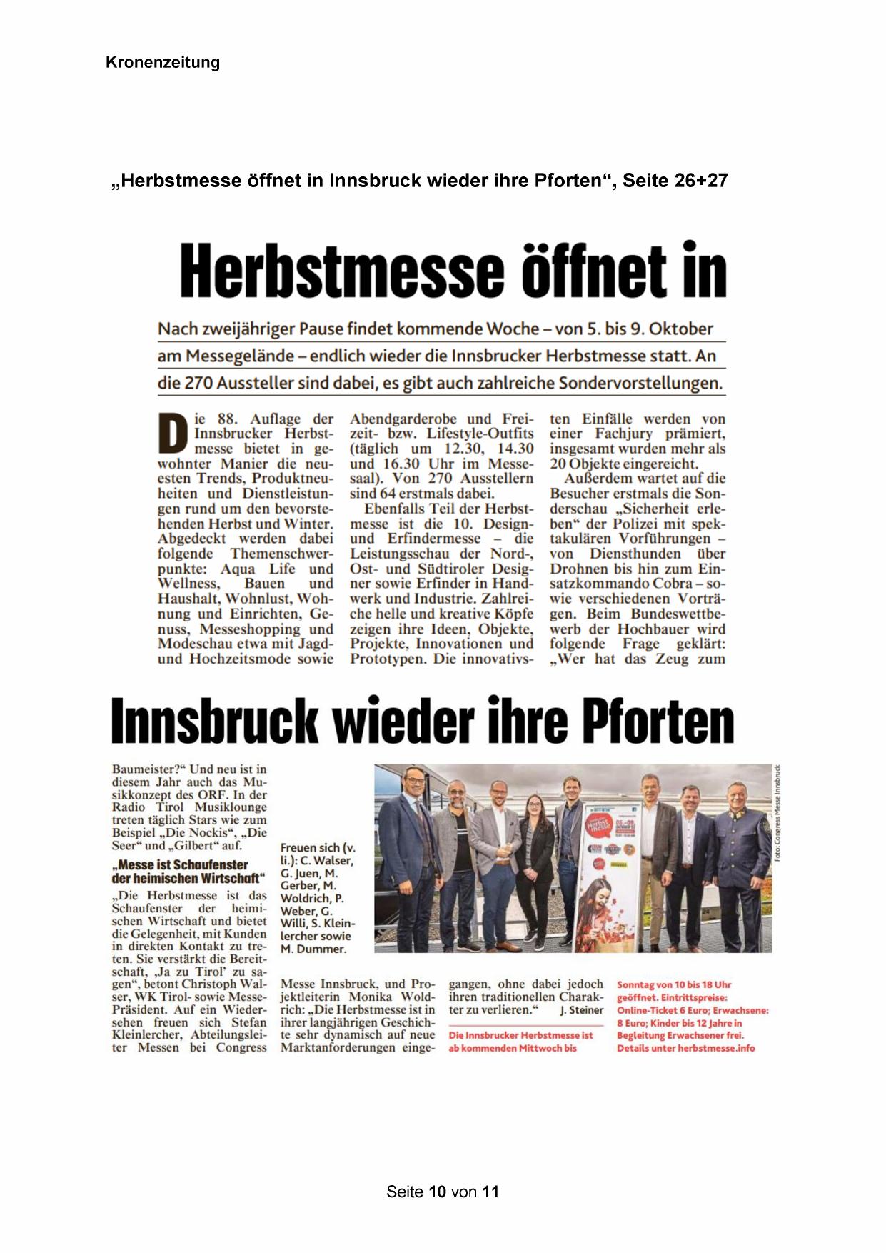 „Herbstmesse öÖffnet in Innsbruck wieder ihre Pforten“, Seite 26+27