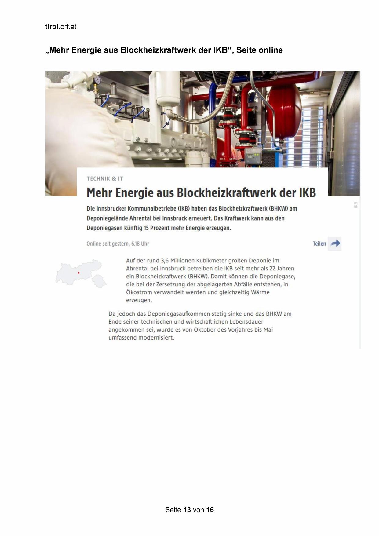 „Mehr Energie aus Blockheizkraftwerk der IKB“, Seite online