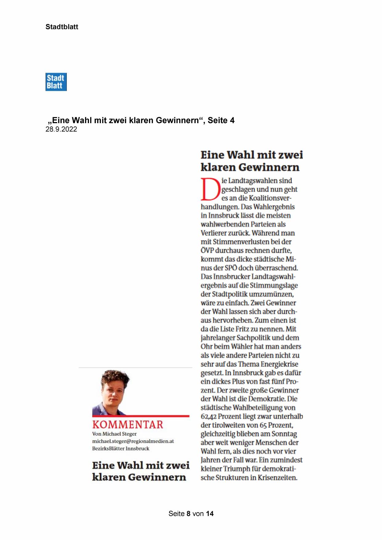 BezirksBlätter Innsbruck Wahl fcm‚ als dies noch vor vier