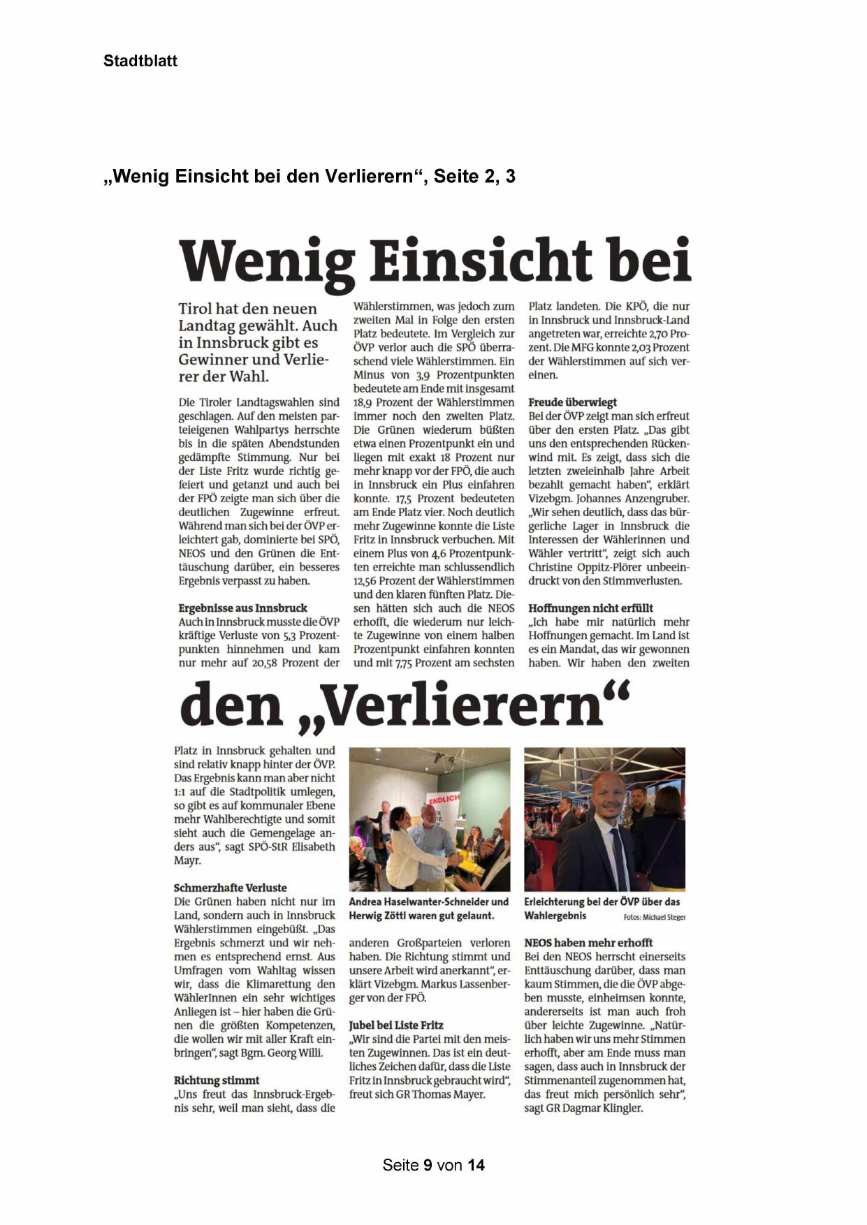 „Wir sehen deutlich, dass das bürgerliche Lager in Innsbruck die