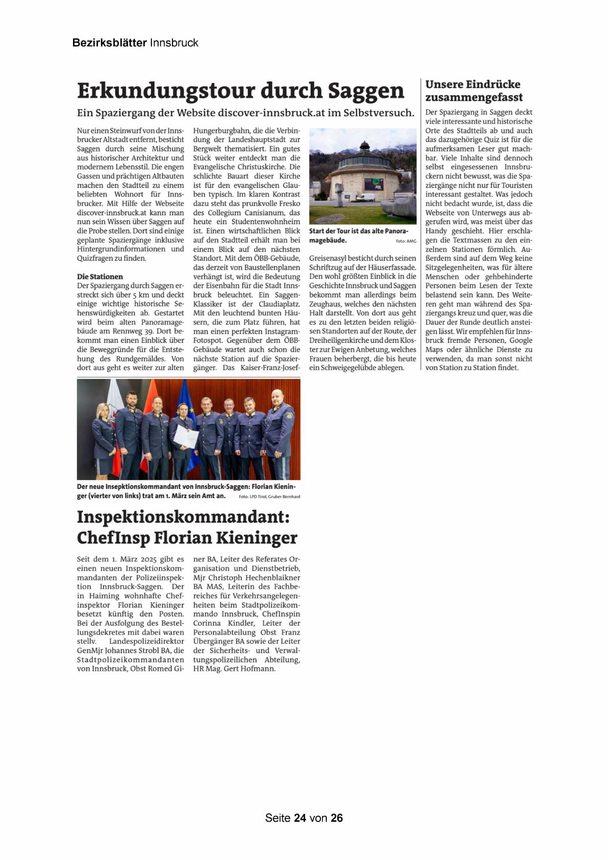 einen neuen Inspektionskommandanten der Polizeiinspektion Innsbruck-Saggen. Der