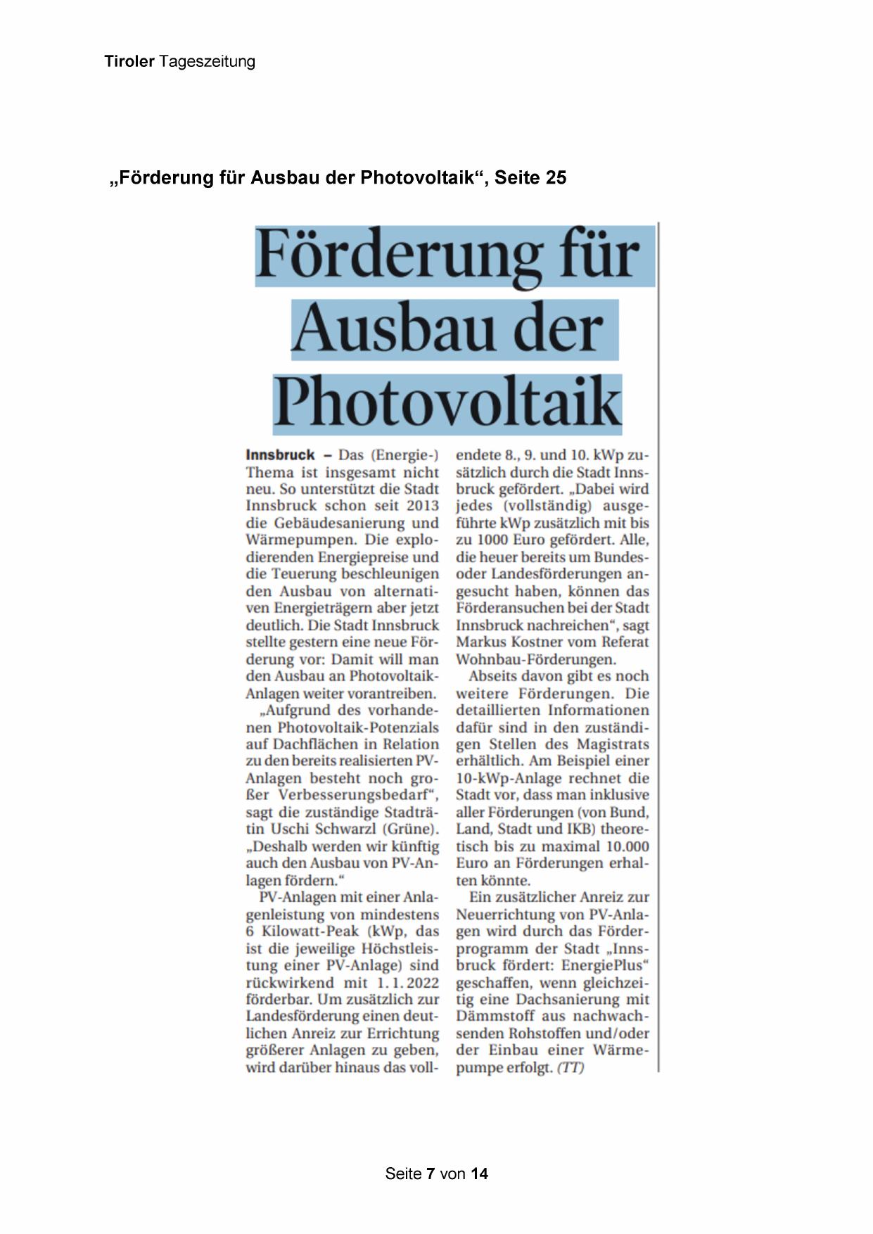 endete 8., 9. und 10. kWp zusätzlich durch die Stadt Innsbruck gefördert. „Dabei wird