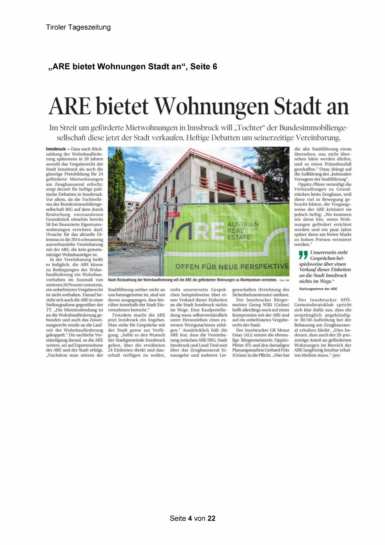 Im Streit um geförderte Mietwohnungen in Innsbruck will „Tochter“ der Bundesimmobiliengesellschaft diese jetzt der Stadt verkaufen. Heftige Debatten um seinerzeitige Vereinbarung.