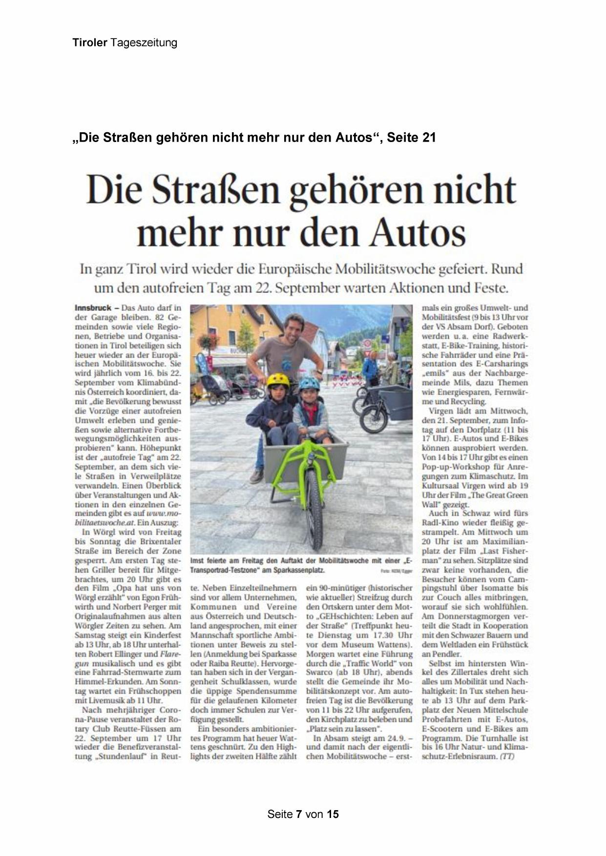 In ganz Tirol wird wieder die Europäische Mobilitätswoche gefeiert. Rund
