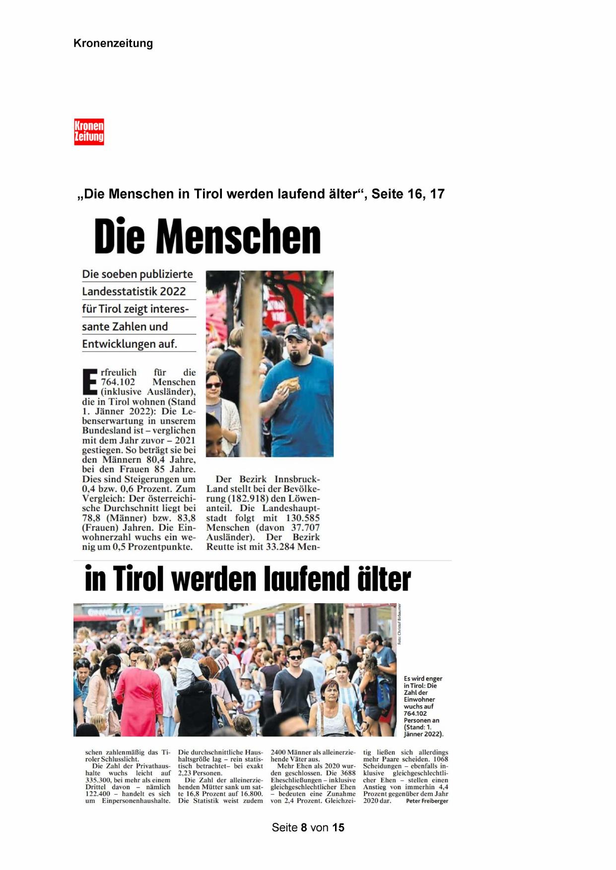 „Die Menschen in Tirol werden laufend älter‘“, Seite 16, 17