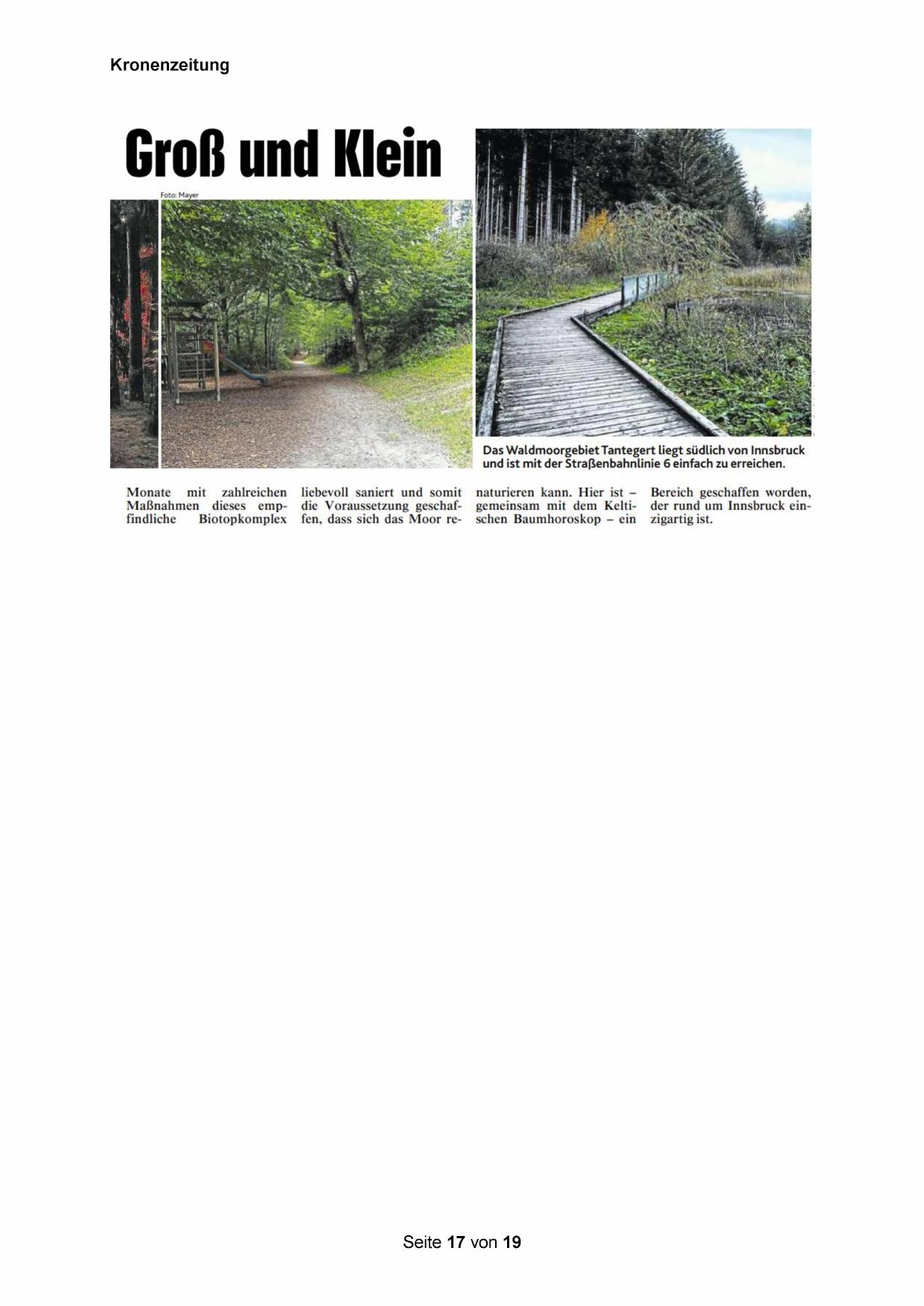Maßnahmen dieses emp- die Voraussetzung geschaf- gemeinsam mit dem Kelti- der rund um Innsbruck einfindliche _ Biotopkomplex fen, dass sich das Moor re- schen Baumhoroskop — ein Zzigartig ist.