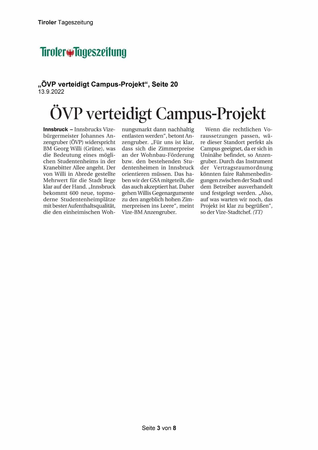 „ÖVP verteidigt Campus-Projekt“, Seite 20