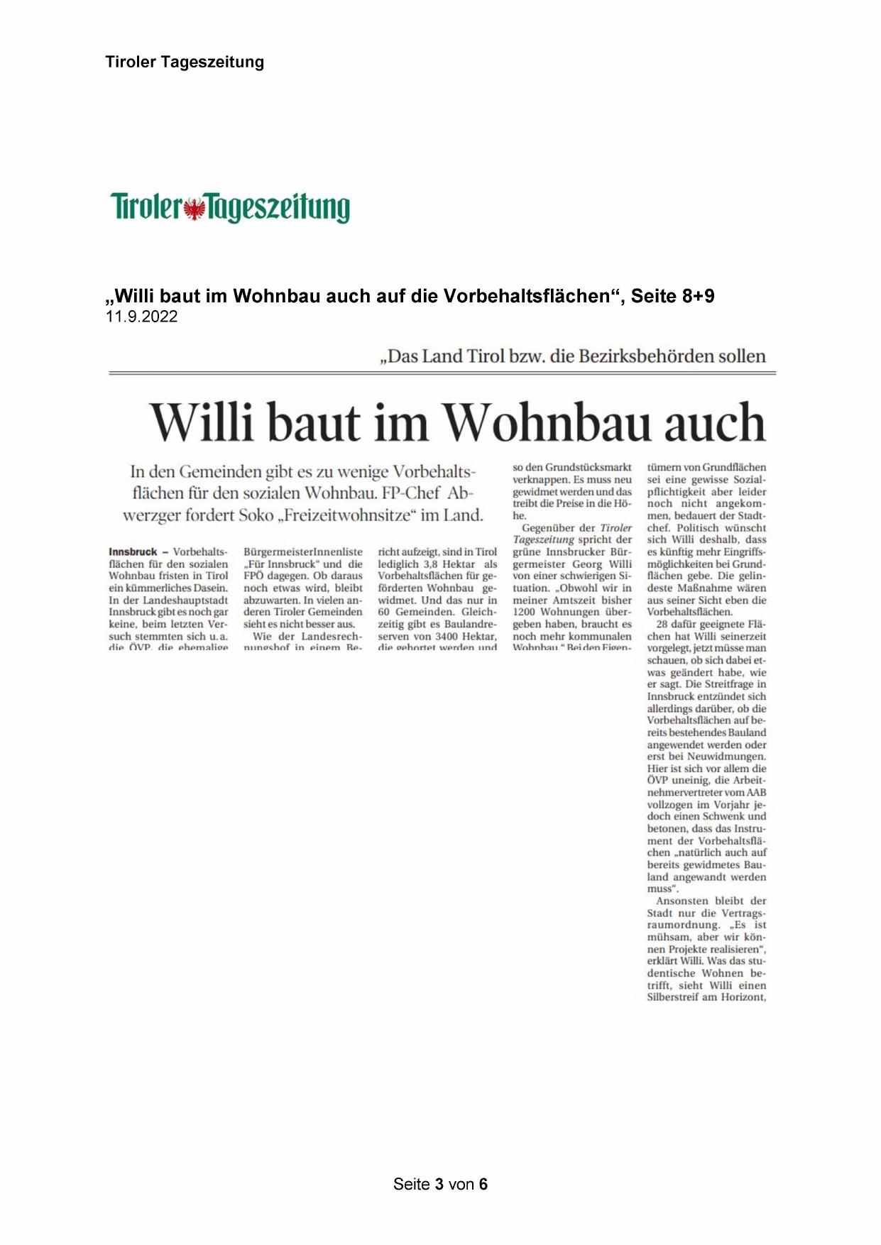 „Willi baut im Wohnbau auch auf die Vorbehaltsflächen“, Seite 8+9