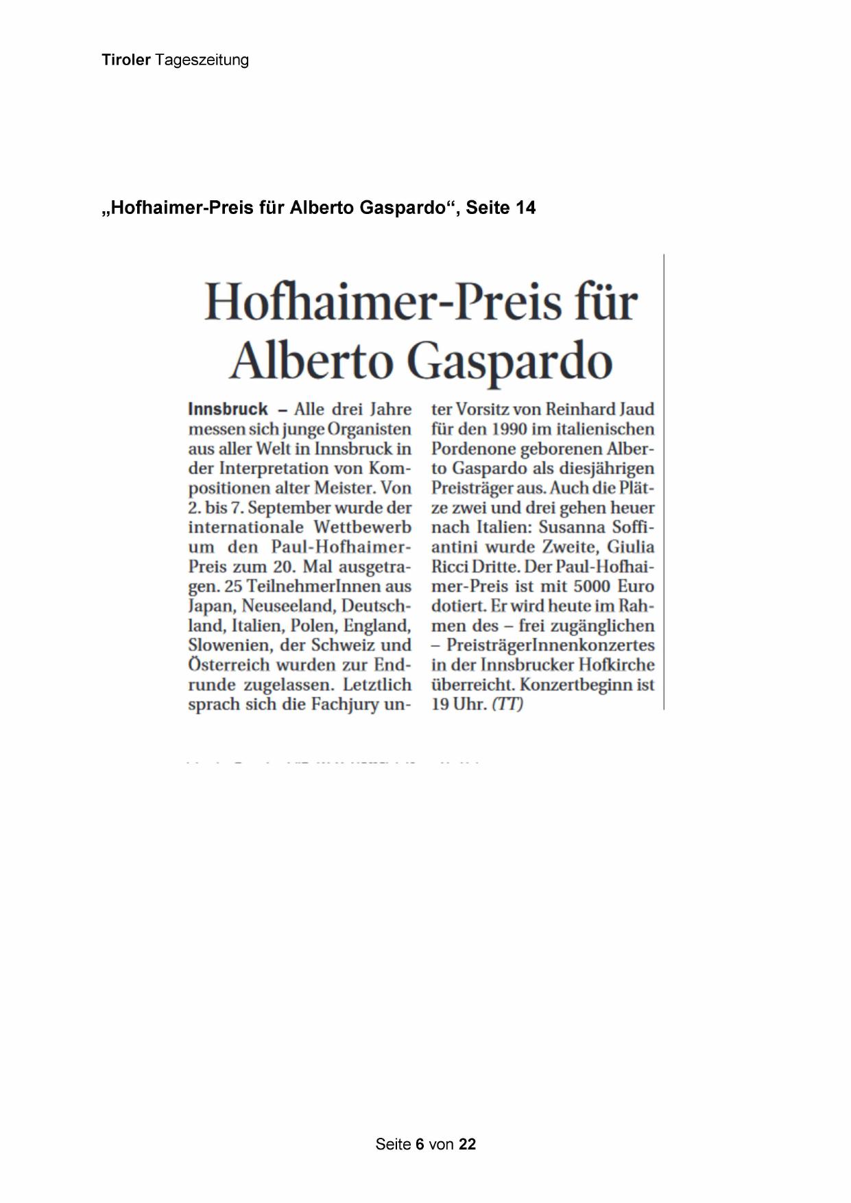„Hofhaimer-Preis für Alberto Gaspardo“, Seite 14