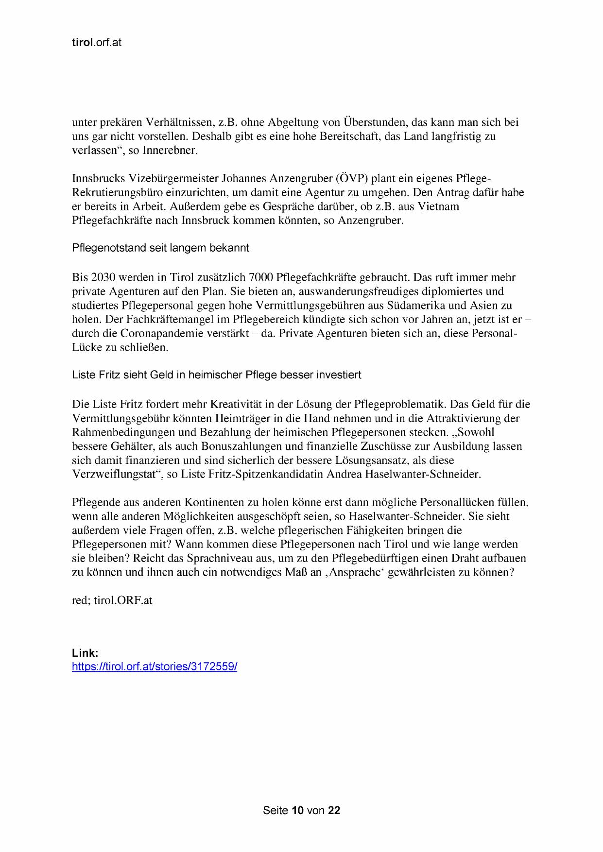 Pflegefachkräfte nach Innsbruck kommen könnten, so Anzengruber.