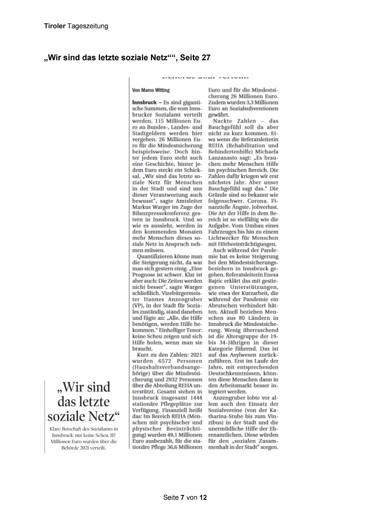 Innsbruck die Mindestsicherung. Wenig überraschend