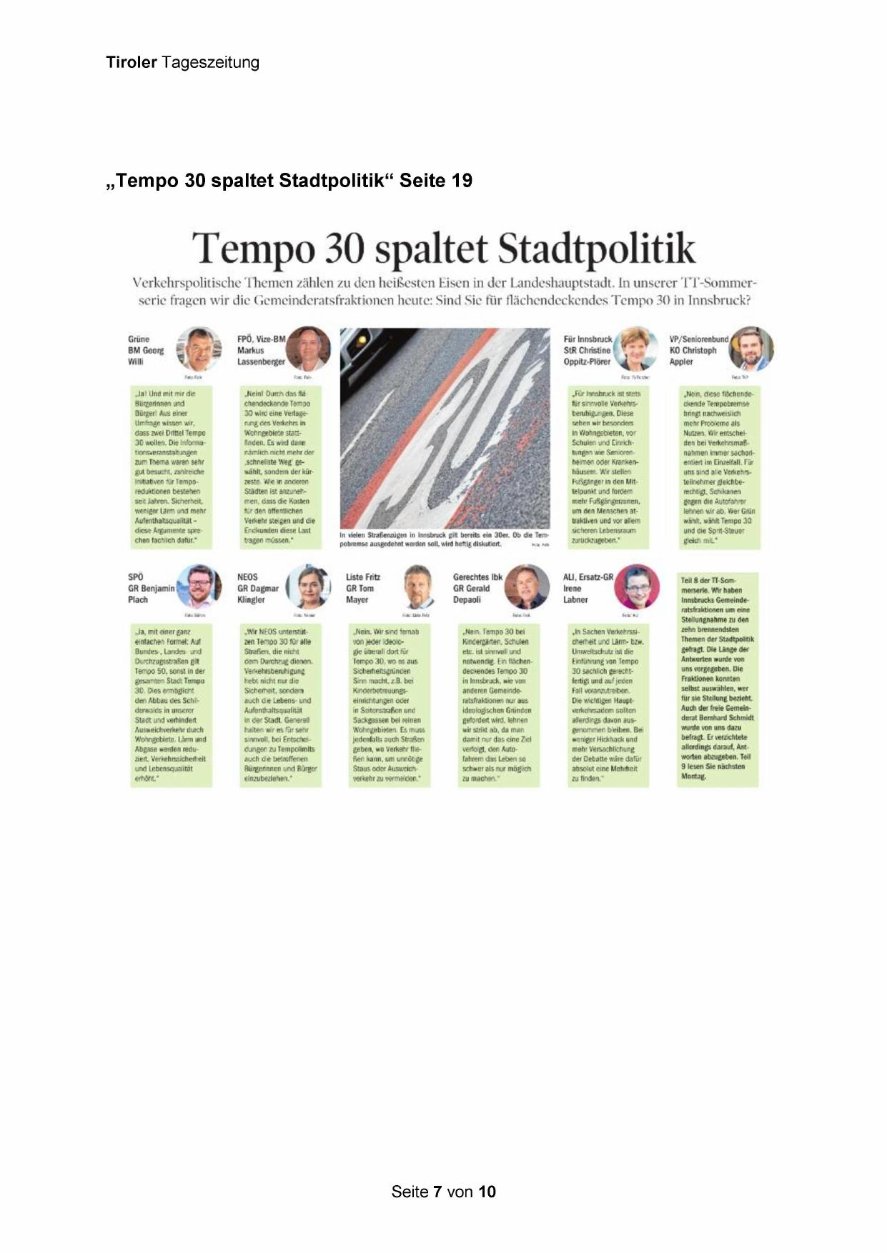 lnü*nWiulln Inssbruck gikt bereits ein 30er. 0& die Tempobhrmmsa ausgedehnt wesden sall, wird hettig diskutiert. . .
