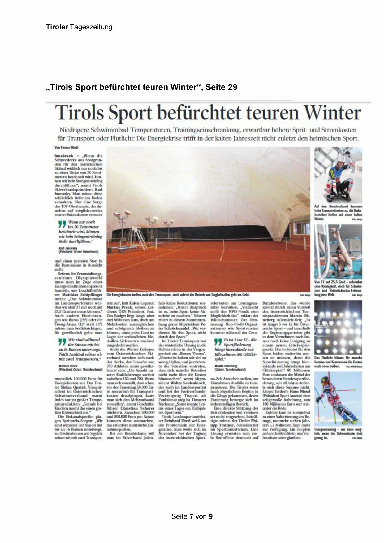„Tirols Sport befürchtet teuren Winter“, Seite 29