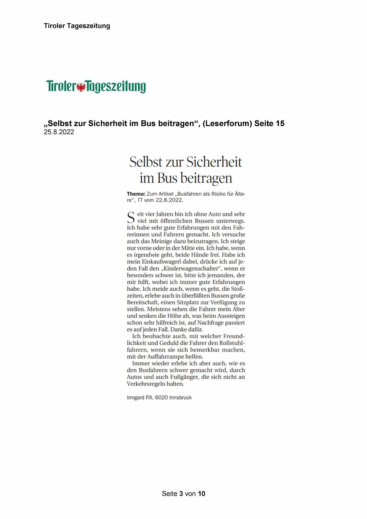 Thema: Zum Artikel „Busfahren als Risiko für Ältere“, TT vom 22.8.2022.