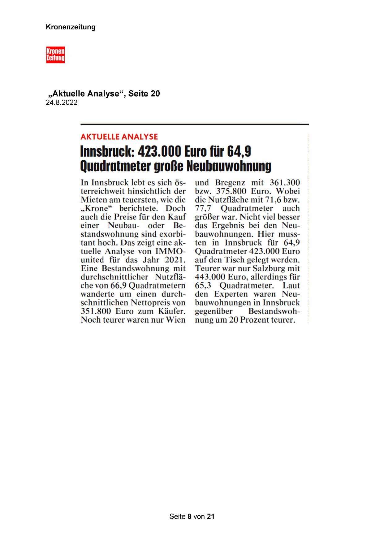 das Ergebnis bei den Neubauwohnungen. Hier mussten in Innsbruck für 64,9