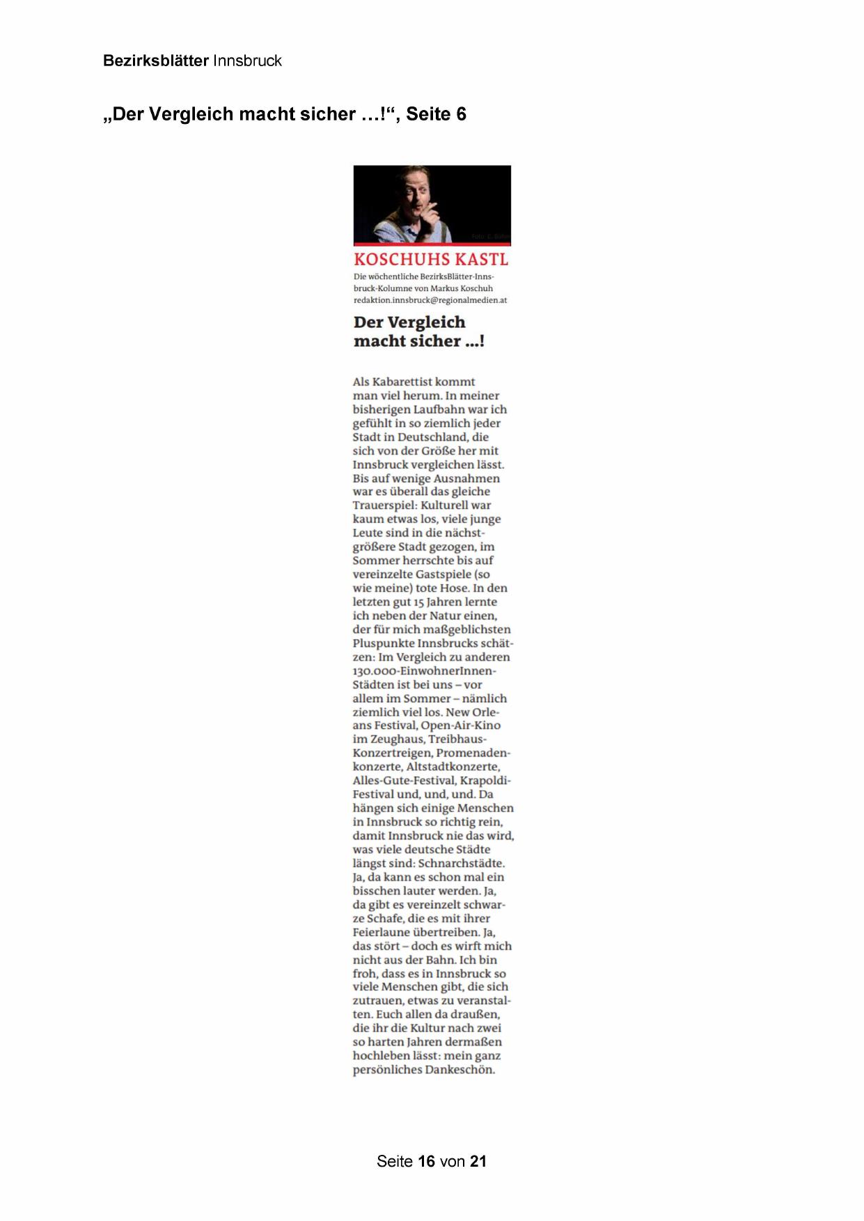 Die wöchentliche BezirksBlätter-Innsbruck-Kolumne von Markus Koschuh