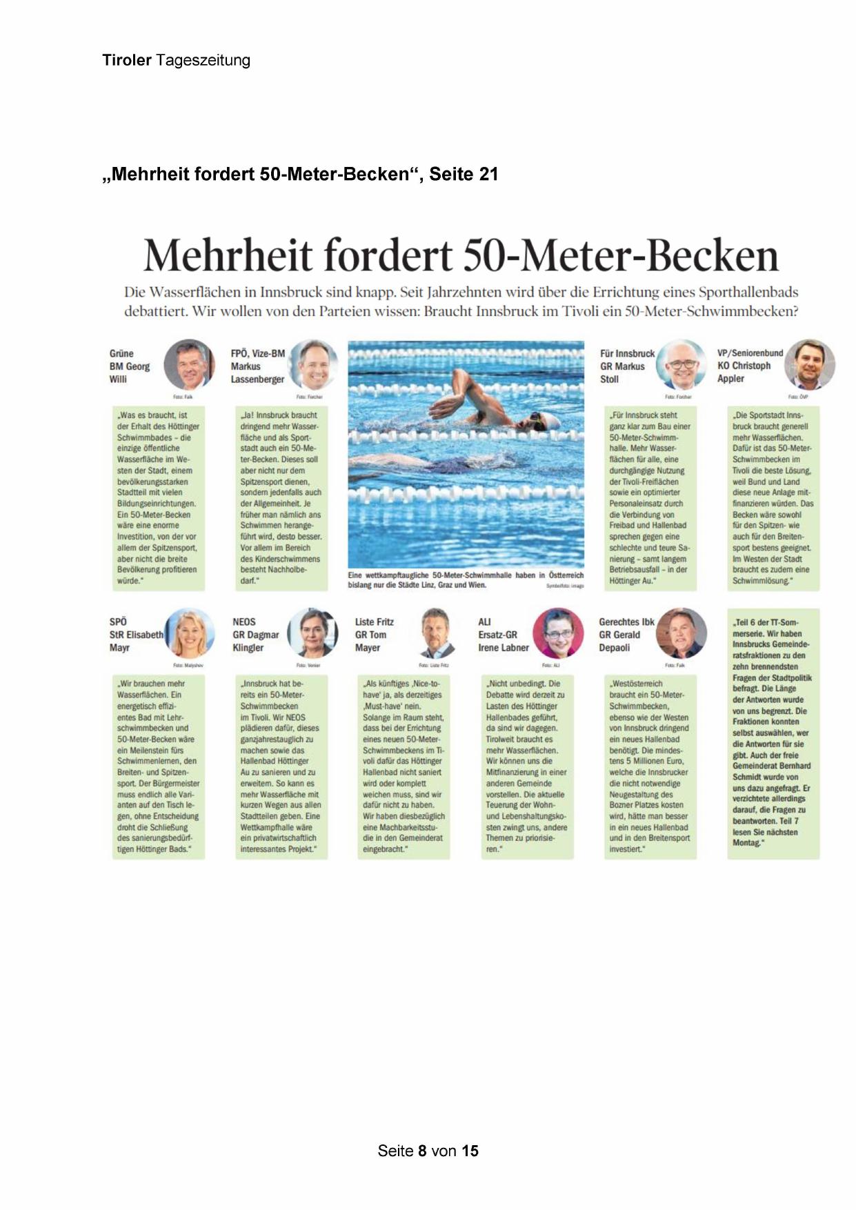 „Mehrheit fordert 50-Meter-Becken“, Seite 21