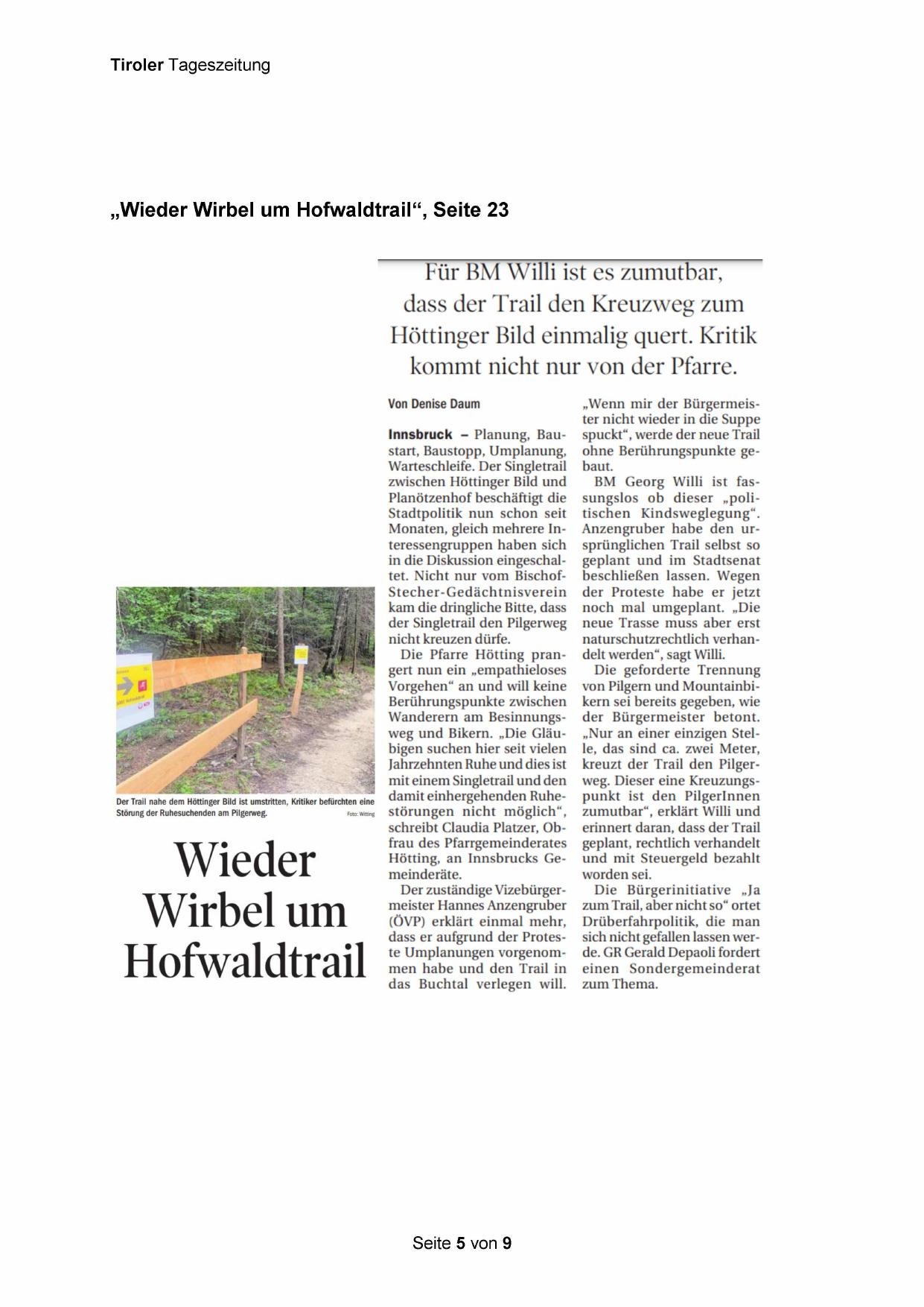 „Wieder Wirbel um Hofwaldtrail‘, Seite 23