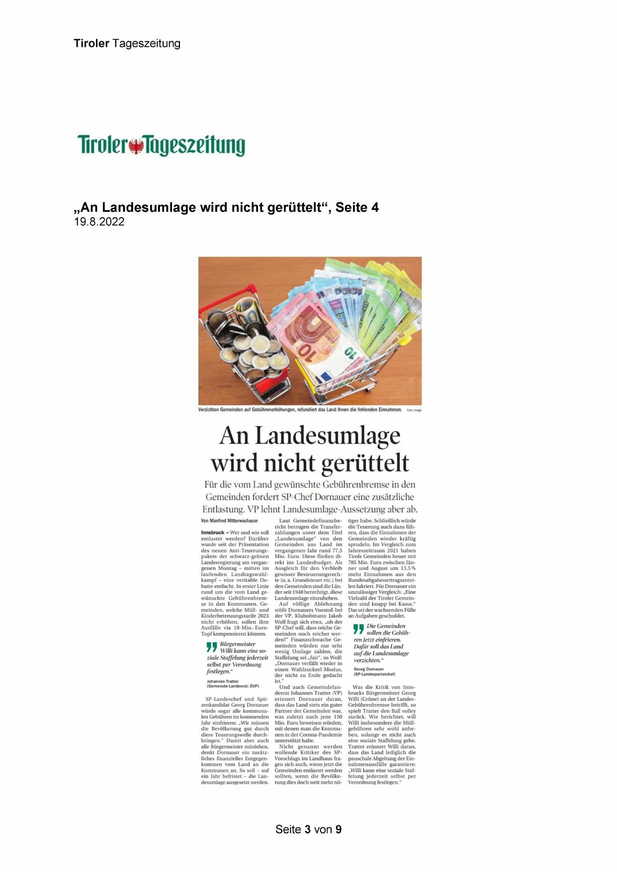 Gemeinden fordert SP-Chef Dornauer eine zusätzliche