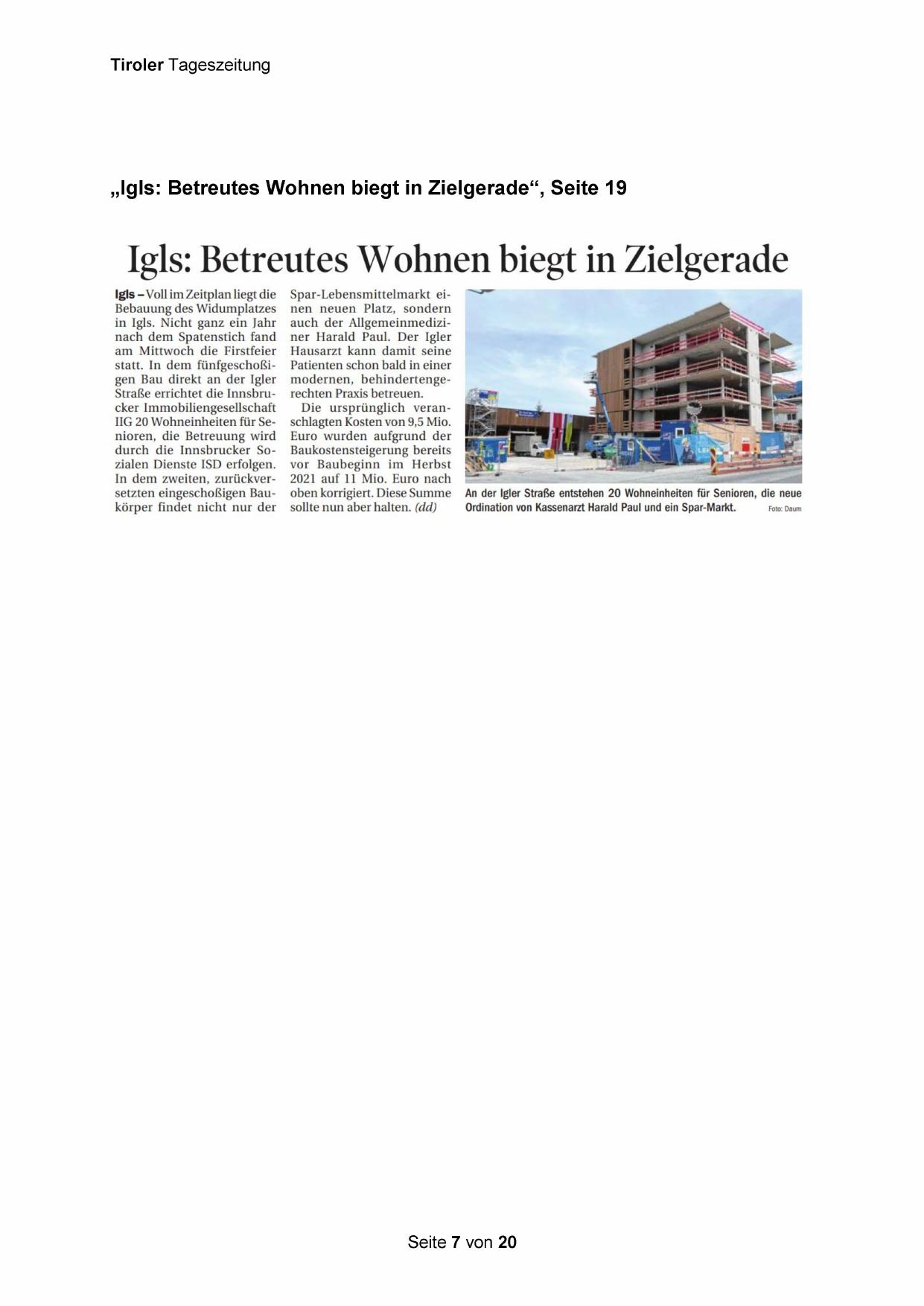 „Igls: Betreutes Wohnen biegt in Zielgerade“, Seite 19