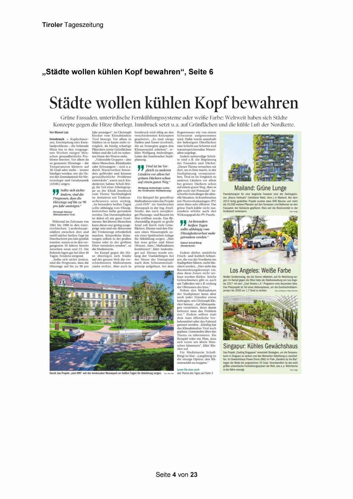 Konzepte gegen die Hitze überlegt. Innsbruck setzt u.a. auf Grünflächen und die kühle Luft der Nordkette.