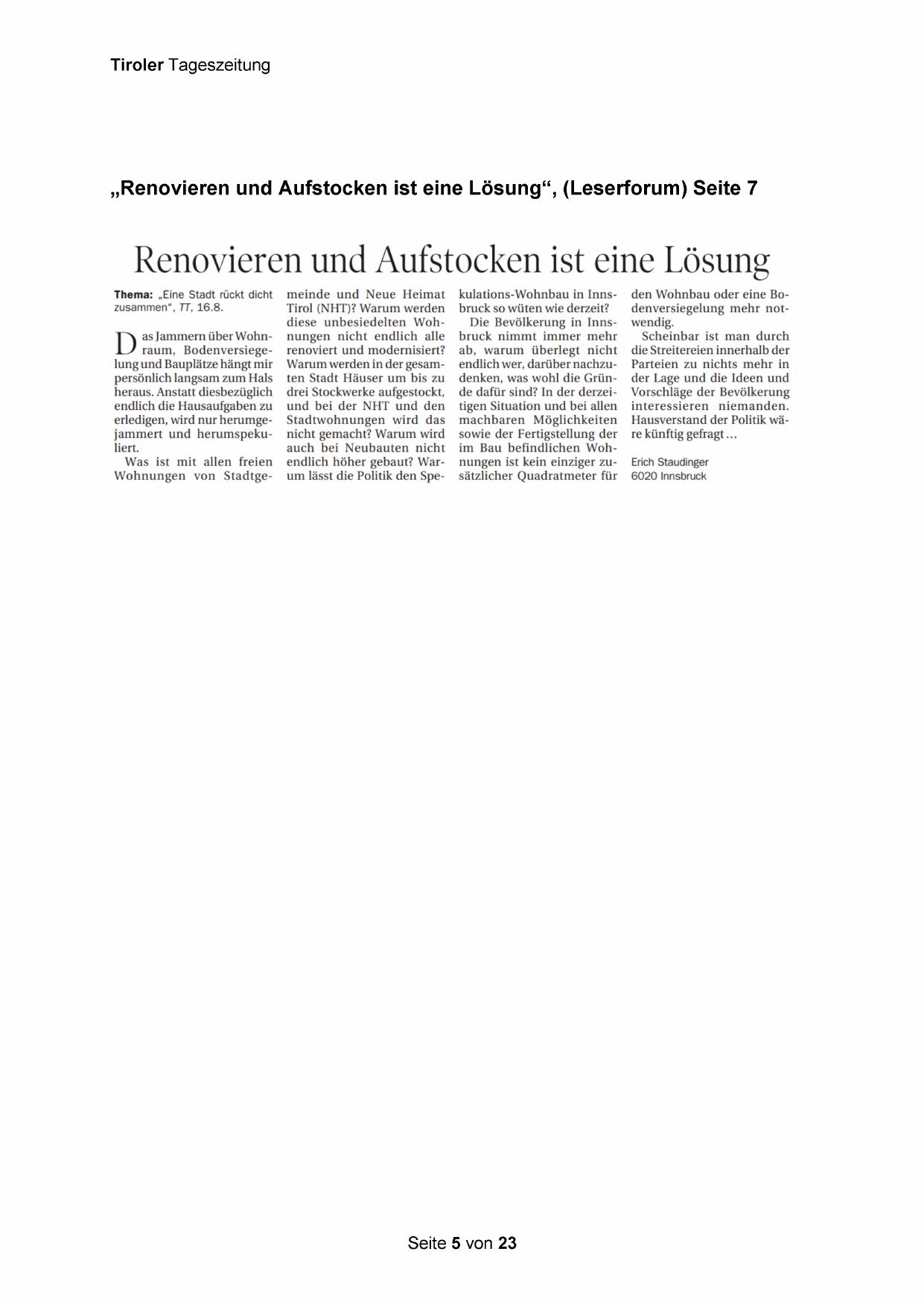 „Renovieren und Aufstocken ist eine Lösung“, (Leserforum) Seite 7