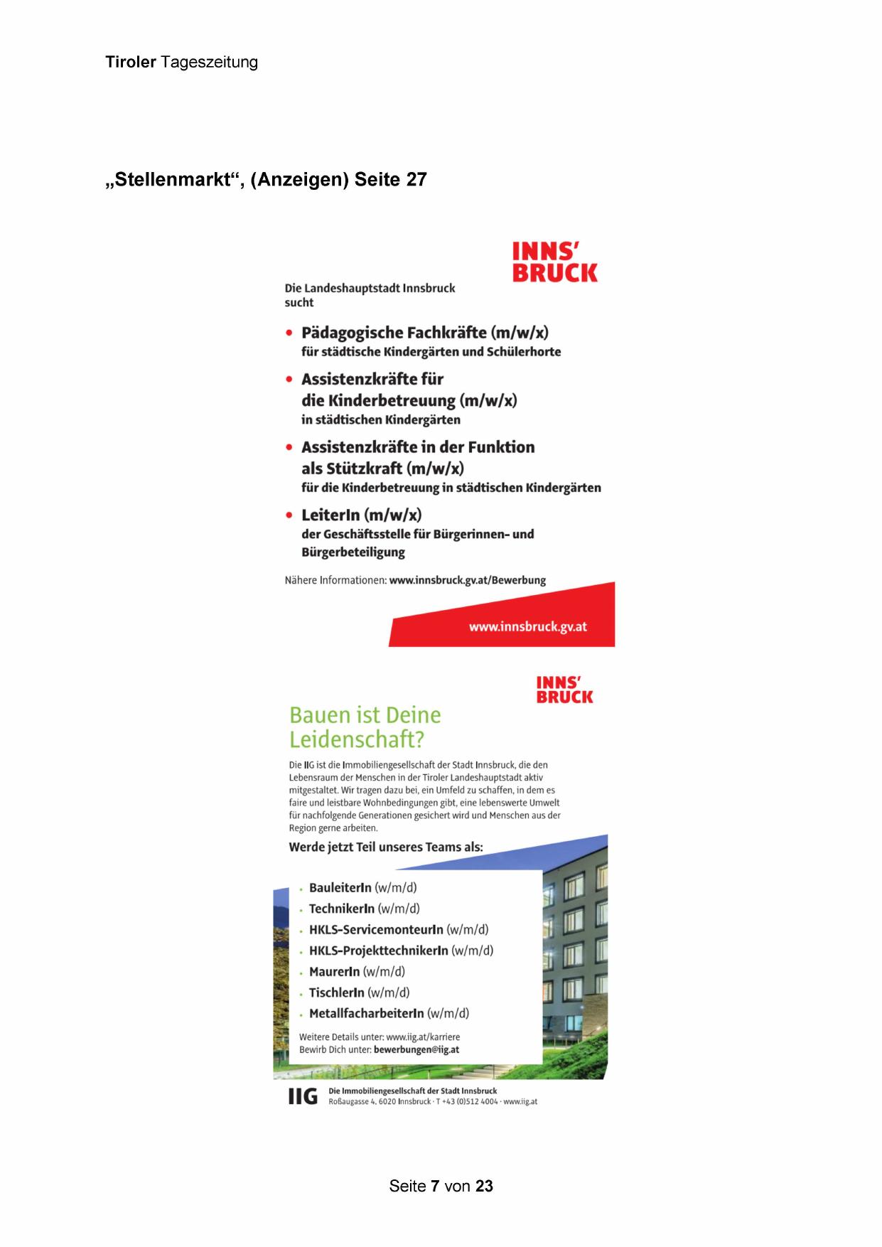 Nähere Informationen: www.innsbruck.gv.at/Bewerbung